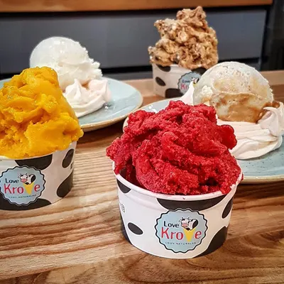 Love Krove w dzielnicy Zabobrze w Jeleniej Górze to popularna lodziarnia przy ul. Sygietyńskiego 2, która cieszy się wysoką oceną 4,6 na 5 w Google na podstawie 82 opinii. Miejsce to przyciąga klientów przede wszystkim dzięki lodom rzemieślniczym wytwarzanym z naturalnych składników. Klienci chwalą różnorodność smaków, w tym sezonowe nowości jak czerwony burak z pomarańczą czy mango, a także solidne porcje w kubeczkach. Obserwuje się też pozytywne komentarze na temat kawy i czystości lokalu. Obsługa jest jednym z najmocniejszych punktów – goście wielokrotnie wspominają o miłej, uśmiechniętej załodze, w tym pani Weronice czy "wesołej Rudzie", która poprawia humor. Lody doceniane są za smak i jakość, choć pojawiają się głosy o spadku formy niektórych wariantów, jak pistacjowe, które bywają określane jako rozwodnione. Krytyka dotyczy też wysokich cen – gałka za 9 zł – oraz zbyt słodkich rożków, za co sugeruje się opcję bez cukru. Lokalizacja przy ruchliwym skrzyżowaniu bywa minusem, zwłaszcza w upalne dni bez zadaszenia. Mimo drobnych uwag, Love Krove pozostaje solidnym wyborem dla miłośników lodów w Jeleniej Górze. Wysoka ocena świadczy o lojalnych klientach, którzy wracają po ulubione smaki i przyjazną atmosferę. Warto zajrzeć, szczególnie po nowe propozycje weekendowe. (198 słów)